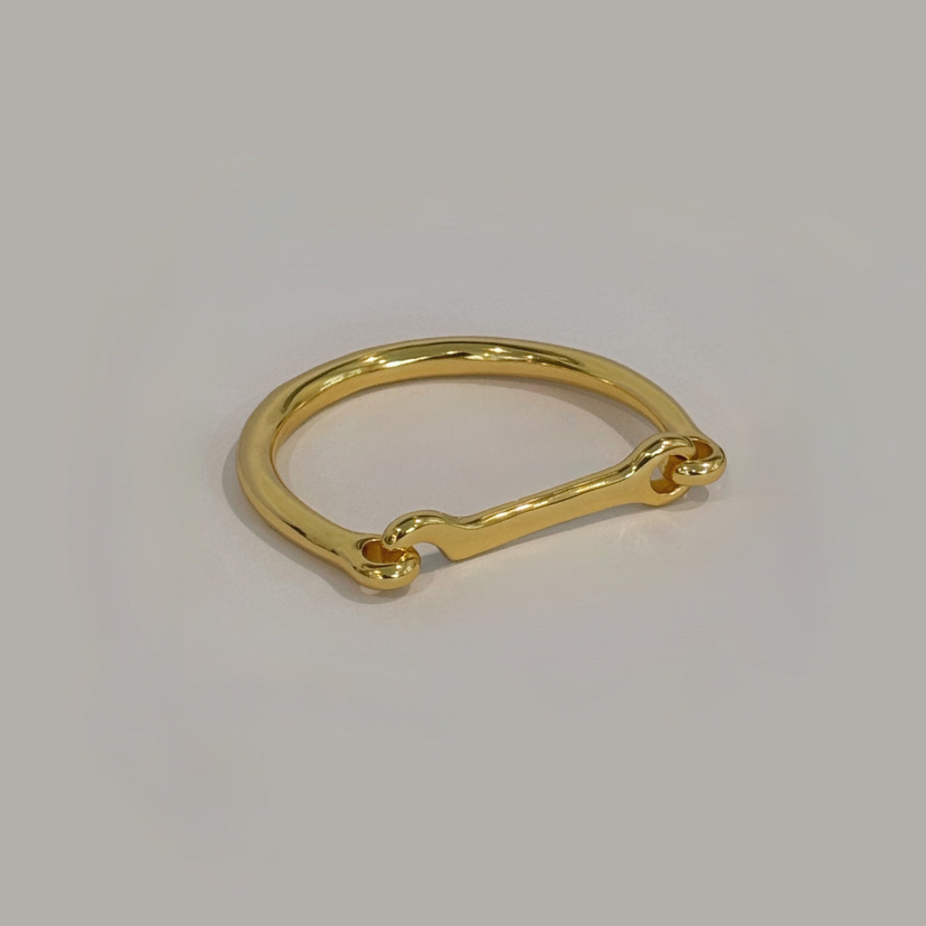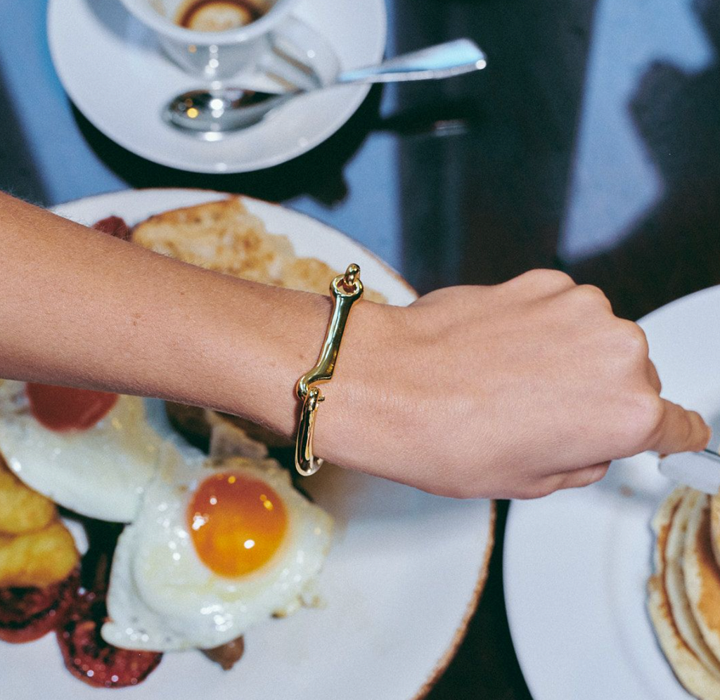 Plated 14k gold this limited edition bracelet blends bone and hook-inspired design in a sculptural, fluid silhouette. One size fits most. Bold, refined, and made in very limited quantities.