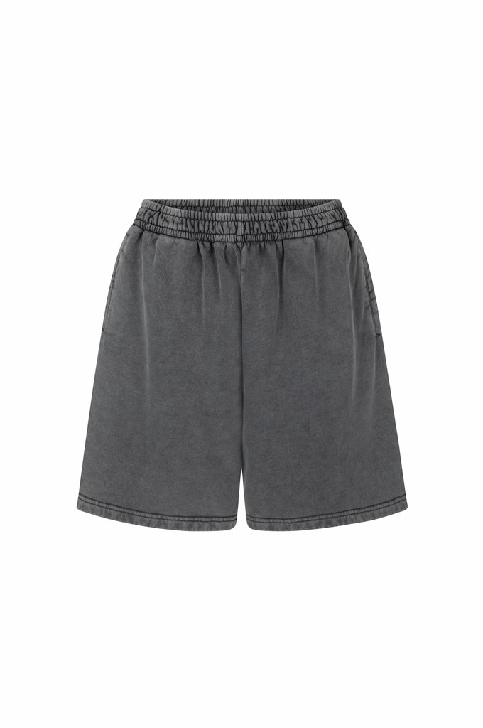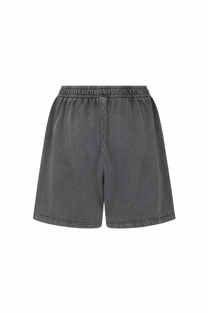 Mid-waist sweatshorts cut in a loose unisex fit with a short length. Made from soft, garment-dyed organic cotton and hand-washed to create a subtle, lived-in effect. Each piece is unique, with slight shade variations that develop over time for a vintage feel. Finished with an elasticated waistband, internal drawcord, and subtle centre-back tonal logo detail.